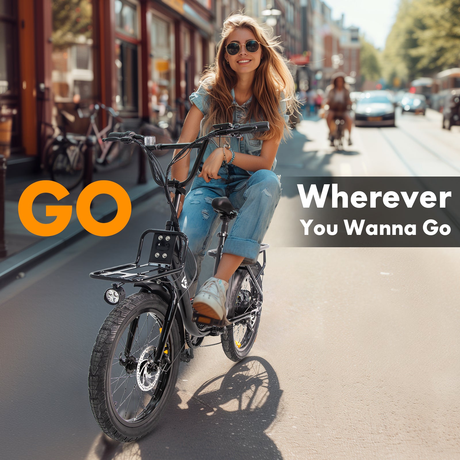 6MSKS 1000W City and Cargo E-Bike for Adults | Low-Step Frame for Easy Mounting, 20" Fat Tires, Hydraulic Brakes & Integrated Rear Rack