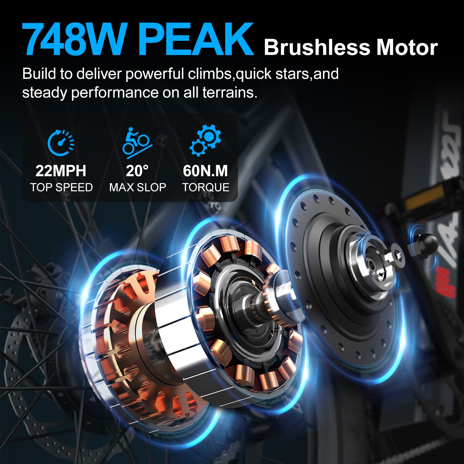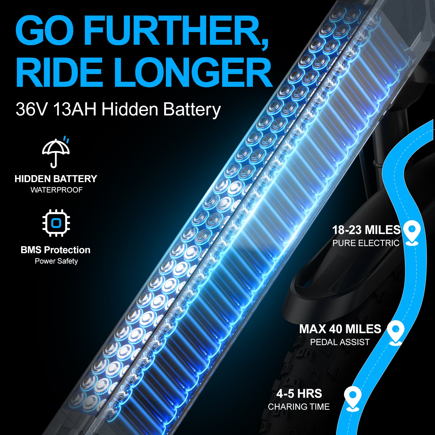 6MSKS 500W Electric Bike for Adults, 40Mi 20MPH Commuting & Mountain E-Bike, 360Wh Removable Battery, 7-Speed, 24" Tires with Front Suspension