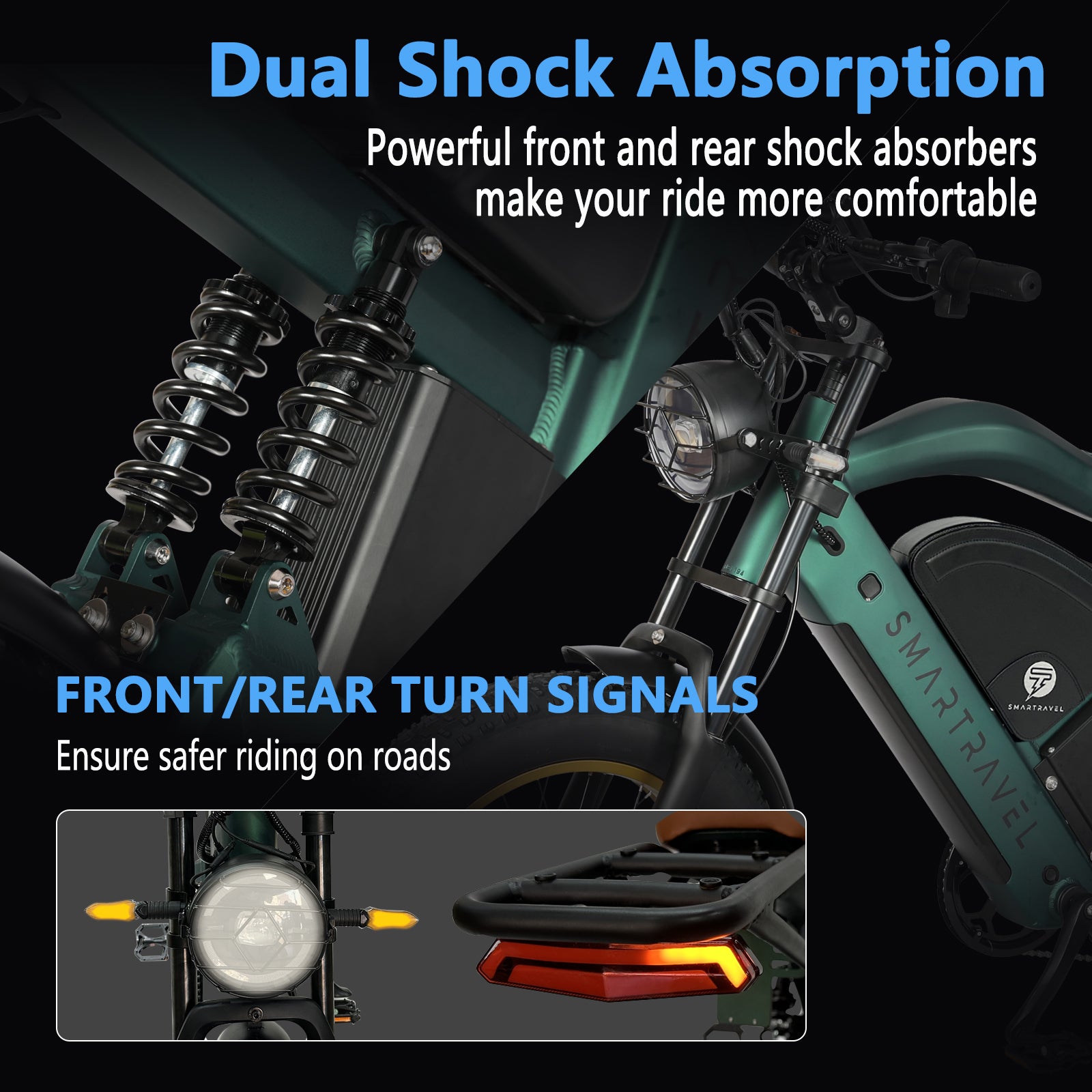 【Shimano 7 Speed Mode】 The Electric Motorcycle ebike for teenagers has 7 safe speed modes that allows riders to adjust their pedaling resistance for varying terrain, offering a more versatile riding experience.